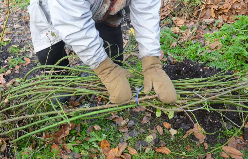 Les variétés non résistantes au gel sont recouvertes de terre à une hauteur de 15-20 cm pour protéger le système racinaire du gel.