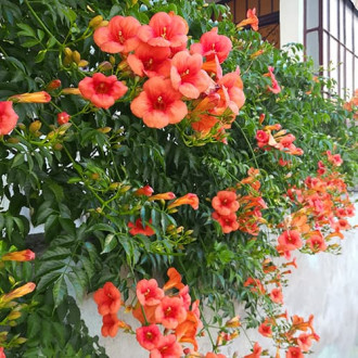 - Campsis hybride - obtenu par les sélectionneurs et doté des meilleures caractéristiques de ses homologues naturels: il tolère bien les hivers froids et a des fleurs très grandes et brillantes.